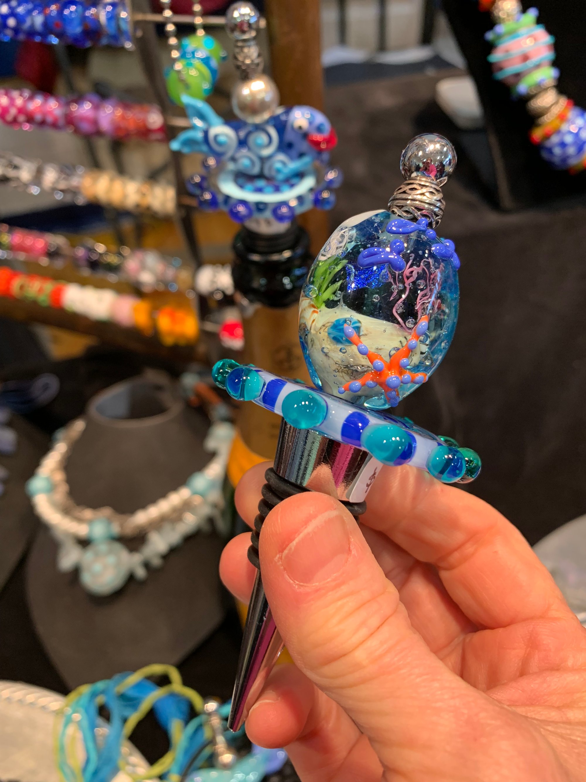Wow your friends with this amazing one of a kind aquarium wine stop. You can't stop looking at it...there's so much going on... It's a little water world of its own.