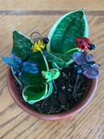 Fun little lampworked glass plant sticks for your potted flowers or fairy garden. Size: approx. 6" tall.