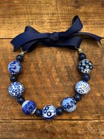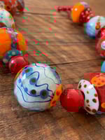 This fabulous one-of-a-kind Japanese-inspired Koi necklace is my newest creation. It can be worn at any length with this cool tie closure. Each hollow lampworked bead is approx. 1 1/4" diameter. In between each lampworked bead is a semi precious stone bead (ie. lapis or red coral), approx. 1/2" diameter. This is the perfect complement to your any wardrobe! Each piece is one of a kind and no two will be exactly the same.